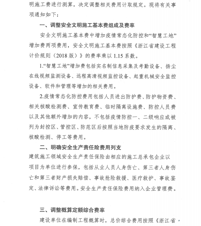 浙江省建設(shè)廳關(guān)于調(diào)整建筑工程安全文明施工費(fèi)的通知