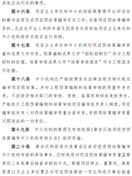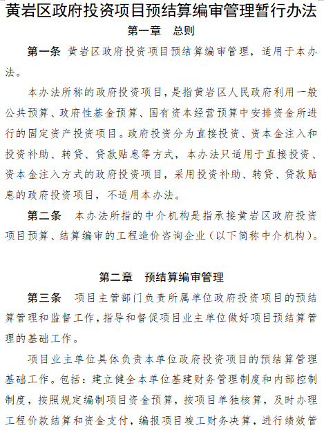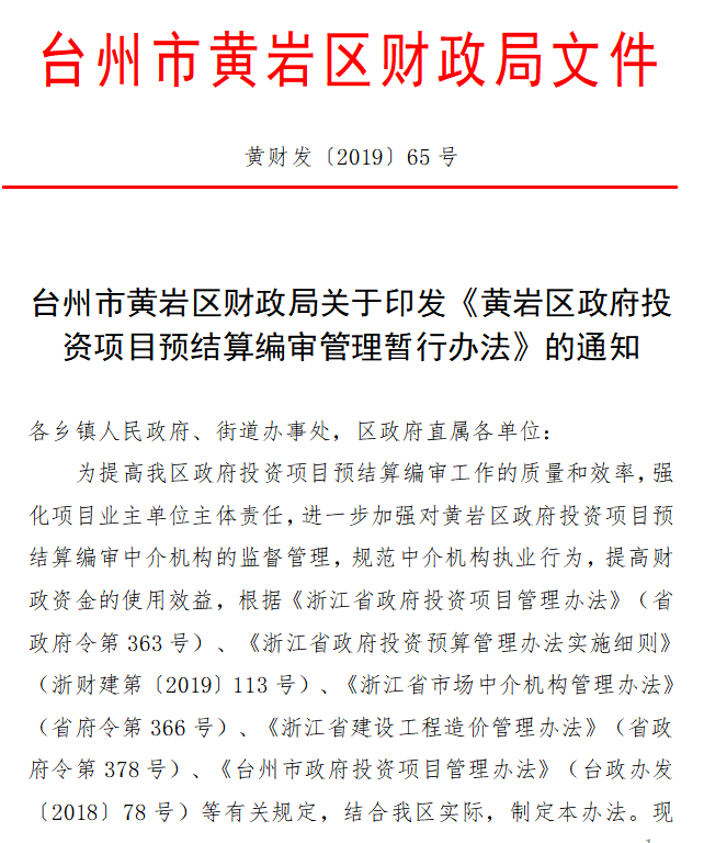 【轉發】臺州市黃巖區財政局關于印發《黃巖區政府投資項目預結算編審管理暫行辦法》的通知