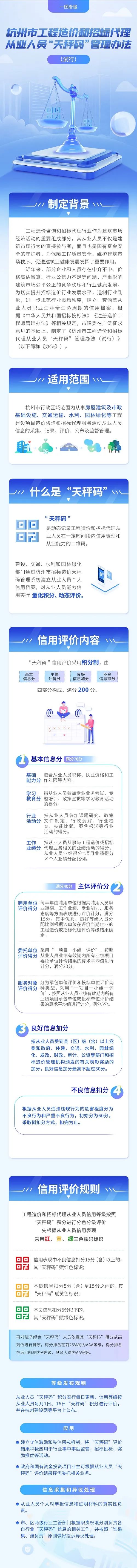 下面就讓我們用一張圖片來讀懂《杭州市工程造價和招標代理從業人員“天秤碼”管理辦法(試行)》有哪些主要內容吧!